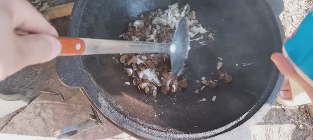 Шампиньоны в казане со сметаной картошка сосиски второе блюдо всё вкусно