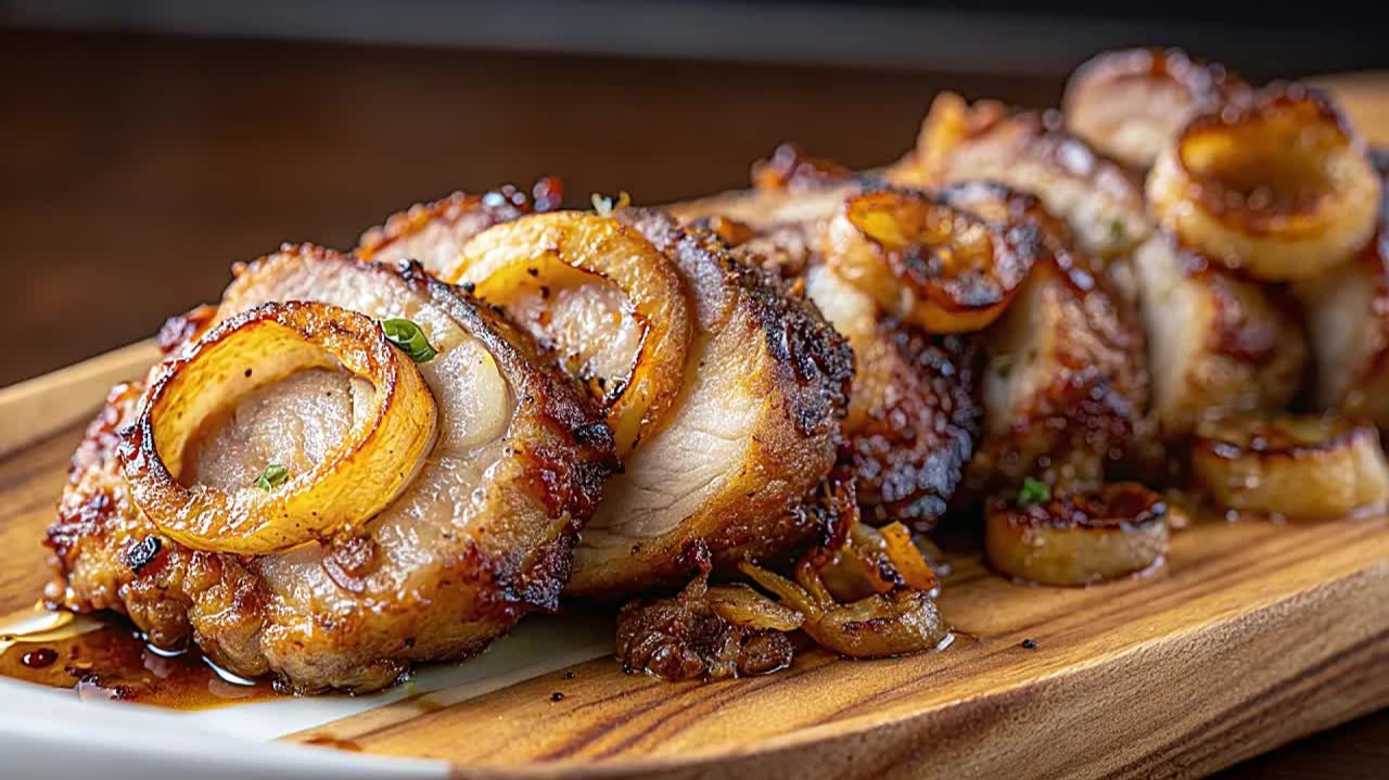 Друзья, сегодня поделюсь с вами настоящей кулинарной находкой, которую я подсмотрела в хорошем ресторане. Теперь я готовлю так мясо на каждое застолье, и тарелки всегда остаются пустыми. Свинина получается невероятно сочной, ароматной и праздничной, а секрет кроется в необычной начинке и правильном маринаде. Если вы ищете идею для вкусного ужина или хотите удивить гостей шикарным горячим блюдом, этот рецепт точно станет вашим любимым. Многие хозяйки боятся запекать крупные куски мяса, переживая, что оно получится сухим или жестким. Но в этом видео я покажу проверенный способ, благодаря которому каждый кусочек будет буквально таять во рту. Мы приготовим полноценный ужин сразу вместе с гарниром, что очень удобно и экономит массу времени на кухне. Сочетание нежного мяса, сливочных ноток начинки и ароматного запеченного картофеля никого не оставит равнодушным. Это блюдо выглядит очень эффектно, как в лучших заведениях города, но готовится из самых доступных продуктов, которые можно купить в любом магазине. Обязательно попробуйте повторить этот рецепт, ваша семья будет в полном восторге от такого сытного и вкусного домашнего угощения. Смотрите видео до конца, чтобы не упустить важные нюансы приготовления. Ингредиенты Основа: Свинина — 1 кг Сливочный сыр — 100 г Зеленый болгарский перец — 1 шт. Чеснок — 2 зубчика Свежая петрушка — по вкусу Соль — по вкусу Черный молотый перец — по вкусу Сушеный чеснок — по вкусу Сушеный базилик — по вкусу Лук репчатый — 1-2 шт. Маринад: Соевый соус — 3 ст. л. Соль — 1 ч. л. Кориандр — 1 ч. л. Копченая паприка — 1 ч. л. Черный молотый перец — по вкусу Чеснок — 2 зубчика Острый соус — 2 ст. л. Гарнир: Картофель — 4 шт. Оливковое масло — по вкусу Соль — по вкусу Сладкая паприка — по вкусу Сушеный чеснок — по вкусу Итальянские травы — по вкусу что приготовить на ужин, свинина в духовке, рецепт свинины, мясной рулет, блюда из мяса, праздничный стол, вкусный ужин, мясо с картошкой в духовке, как приготовить мясо, запеченная свинина, ужин для всей семьи, горячее блюдо на праздник, рецепты из свинины, сочное мясо рецепт