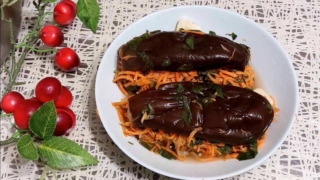 Вкуснейшая закуска,фаршированные квашеные баклажаны. Ингредиенты: баклажаны-2кг. морковь-500-600гр чеснок-1гол. зелень петрушка,кинза соль-1ч.л. Рассол: вода 2 литра соль-4ст.л. с небольшой горкой лавровый лист-2-3шт. душистый перец -6шт. чёрный перец-10шт. для прослойки : чеснок-1гол. сельдерей #фаршированныеквашеныебаклажаны#квашеныебакажанырецепт,баклажанысморковкой#всёполучаетсявкусно#
