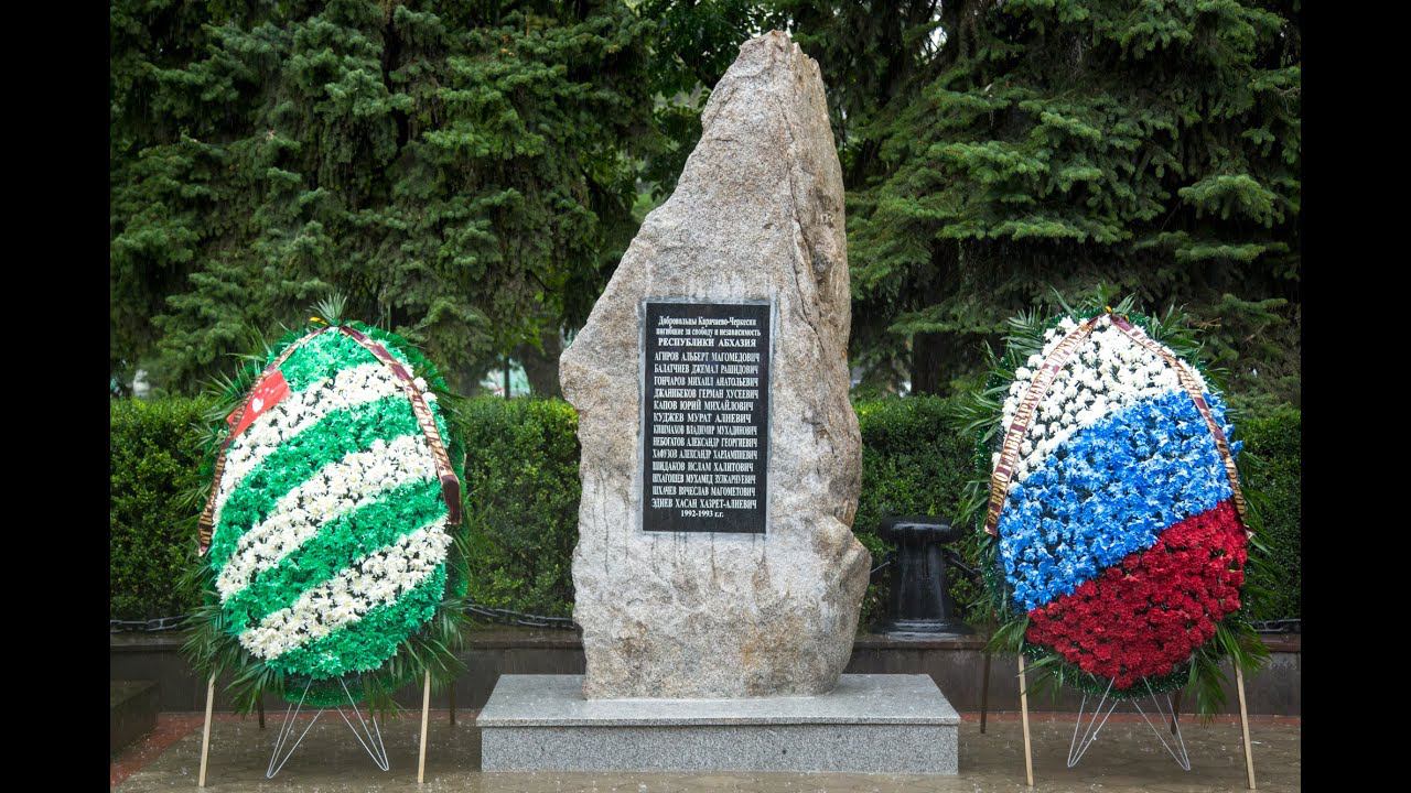 31 августа на аллее Славы в парке Победы города Черкесска состоялось торжественное открытие мемориала воинам-добровольцам из Карачаево-Черкесии, погибшим за свободу и независимость Республики Абхазия. В торжественной церемонии, посвященной этому событию, приняли участие Президент Абхазии Рауль Хаджимба, временно исполняющий обязанности главы Карачаево-Черкесии Рашид Темрезов, Президент Международного объединения «Алашара» Мусса Экзеков, родственники погибших земляков, их близкие, друзья, члены Правительства и Парламента, КЧР, духовенство, руководители общественных организаций, горожане. Затем Рауль Хаджимба встретился с добровольцами, принимавшими участие в Отечественной войне Абхазии 1992-1993г.г. Встреча в малом зале Дома Правительства КЧР прошла в очень теплой, дружественной атмосфере.