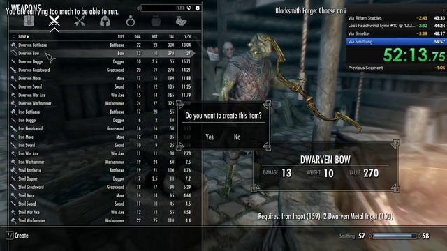 Skyrim smithing 100 speedrun, glitchless, in less than 1 hour starting with early loot [Part 3]