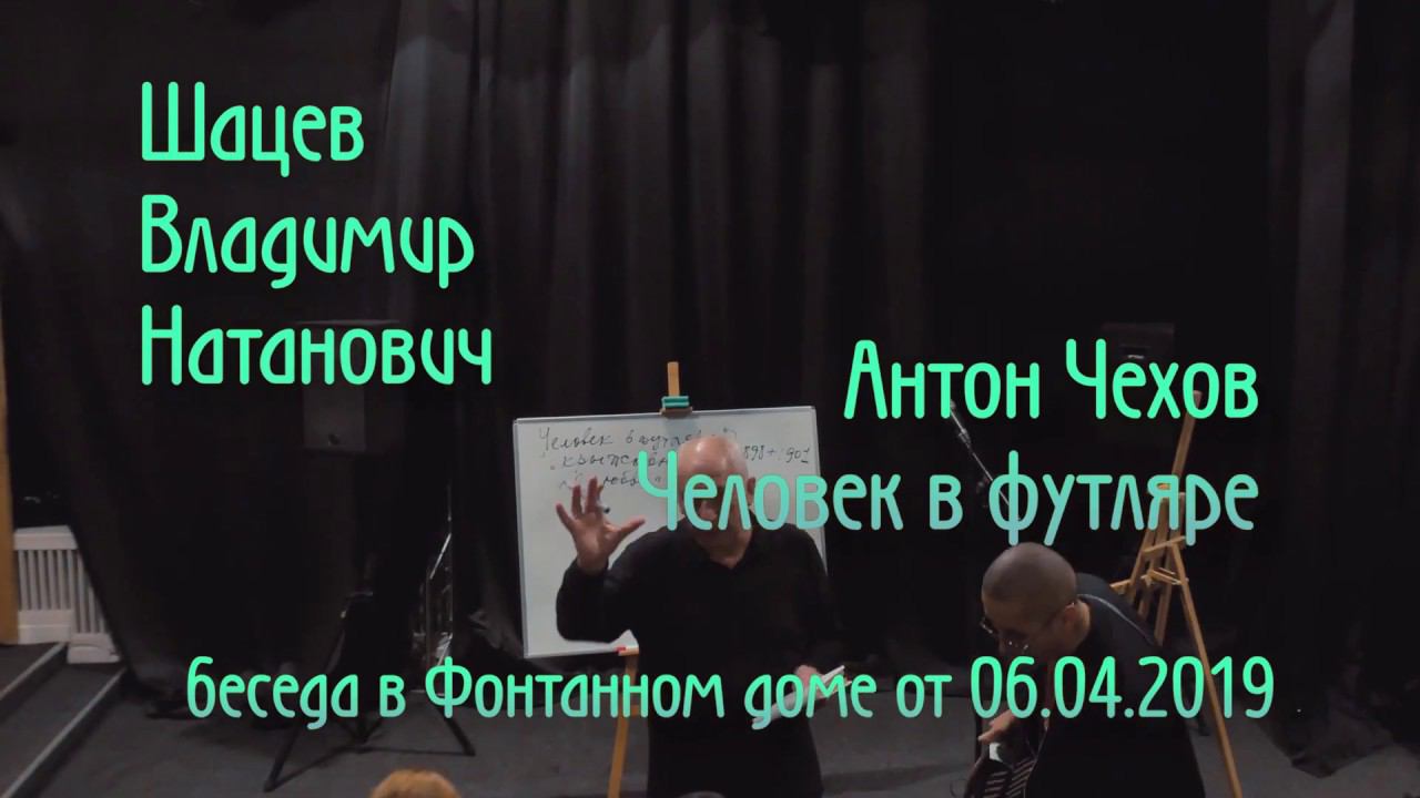 Шацев Владимир Натанович. Лекция о Чехове. "Человек в футляре". Беседа в Фонтанном доме от 06.04.2019 ------------------- В 1983 - 85 годах - мой школьный Учитель по литературе в старших классах. Страница Владимира Шацева : https://vk.com/vshatsev
