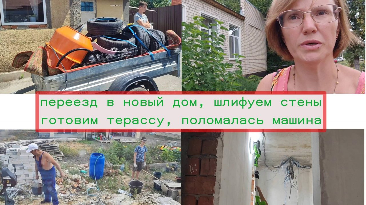 переезд в дом, шлифую стены, заливаем терассу, из Германии в Россию