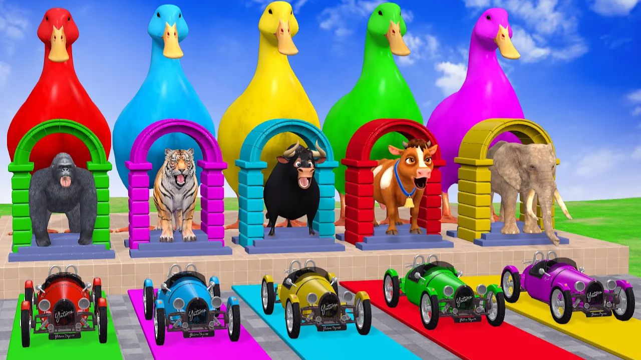 Веселые игры с слоном, гориллой, бегемотом, тигром - 3D игра с животными - Забавные 3D животные