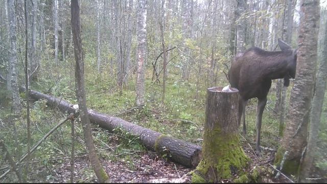 Лосиха на солонце. Ленинградская область. Осень.