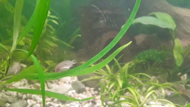 Мальки цихлиды . Хромис красавец мес 2 и гуппи. Пока живут мирно)