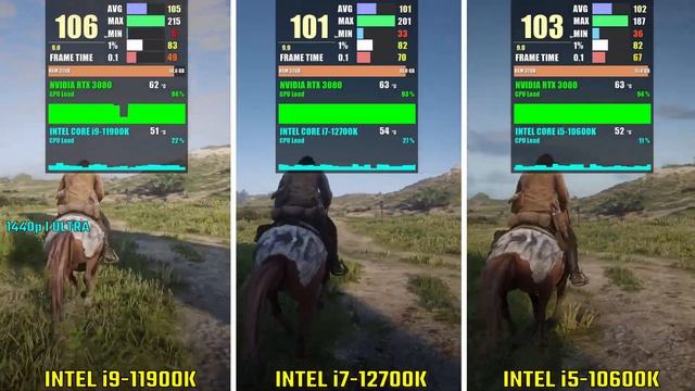 INTEL i9-11900K vs i7-12700K vs INTEL i5-10600K | Test in 5 Games | 1440p Ultra Benchmarks Amazon Affiliate Link ✅ {United States} ? INTEL i9-11900K https://amzn.to/3MmTuQt ? INTEL i7-12700K https://amzn.to/3oEFN4Q ? INTEL i5-10600K https://amzn.to/3MekLV4 ? NVIDIA RTX 3080 https://amzn.to/3E1HNJZ ✅ MY PC Specs ? AMD CPU : https://amzn.to/3dzDpGs ? NVIDIA GPU : https://amzn.to/3wnklUm ? G.SKILL RAM : https://amzn.to/2PyaqL5 ? NVME SSD : https://amzn.to/3sPKN6W ? LIQUID COOLER : https://amzn.to/3rOh8tE ? MOTHERBOARD : https://amzn.to/3cMIBr3 ? POWER SUPPLY : https://amzn.to/3ukNcaa ? PC CABINET : https://amzn.to/3rMnDgw ✅ 11900K vs 10600K vs 12700K Benchmarks 00:00 - Cyberpunk 2077 01:38 - Assassin's Creed Valhalla 03:16 - Red Dead Redemption 2 04:42 - Watch Dogs Legion 06:13 - Horizon Zero Dawn ✅ Test Specs CPU : 11900K | 12700K | 10600K RAM : 2x16GB DDR4 3600MHz SSD : Samsung 980 EVO Plus SSD 1TB #11900Kvs_12700K #10600K_vs_12700K #MikeBenchmark
