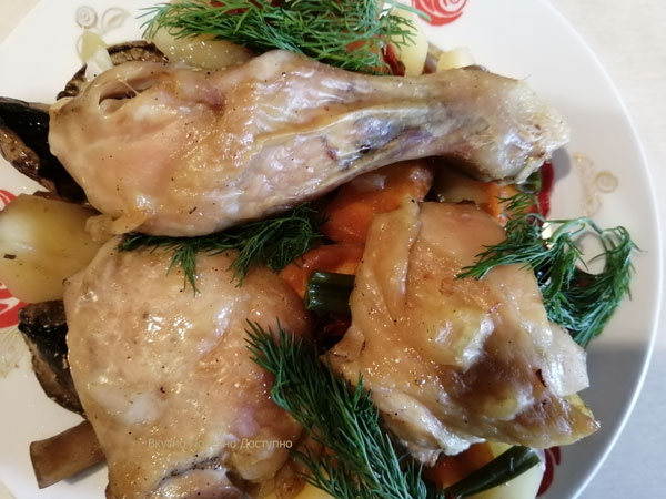 Курица с картошкой и грибами, запеченная в духовке