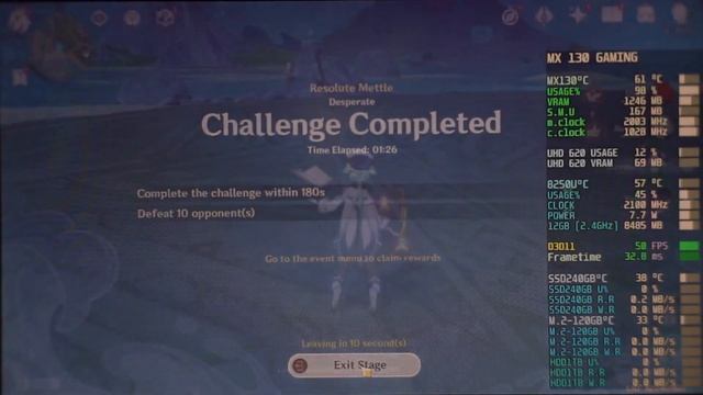Genshin Impact 4.01 on MX130 - i5 8250u - 12GB RAM
