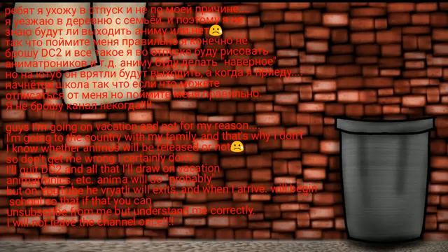 И да всем привет с вами Nightmare -Yurii- я прошу у вас прошение за уход решение не моё я буду во время отпуска рисовать в Ibis Paint X кому интересно я есть в ВК, вот мой ВК - https://vk.com/nightmareyurii И группа - https://vk.com/club197327238 Ну и вот так сказать кому интересно можете зайти посмотреть подписать кинуть в друзья "может приму"🌚🌚🌚 И я не знаю будет от ВК работать без интернета если да то я буду там поддерживать актив. Спасибо за внимание!!! And Yes all hi with you Nightmare-Yurii - I am asking you for a petition for leaving the decision is not mine I will be on vacation to draw in Ibis Paint X who is interested I am in VK, here is my VK - https://vk.com/nightmareyurii And the group - https://vk.com/club197327238 Ah and here is so say whom interestingly you can go watch sign throw in friends"can accept" 🌚 🌚 🌚 And I do not know if the VC will work without the Internet if so I will support the asset there. Thanks for your attention!!!