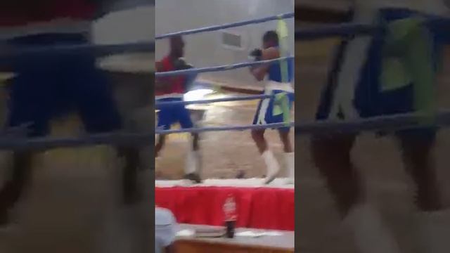 Tobias in the blue attire working out his component at the Boxing night at Walvis Bay community Hall.