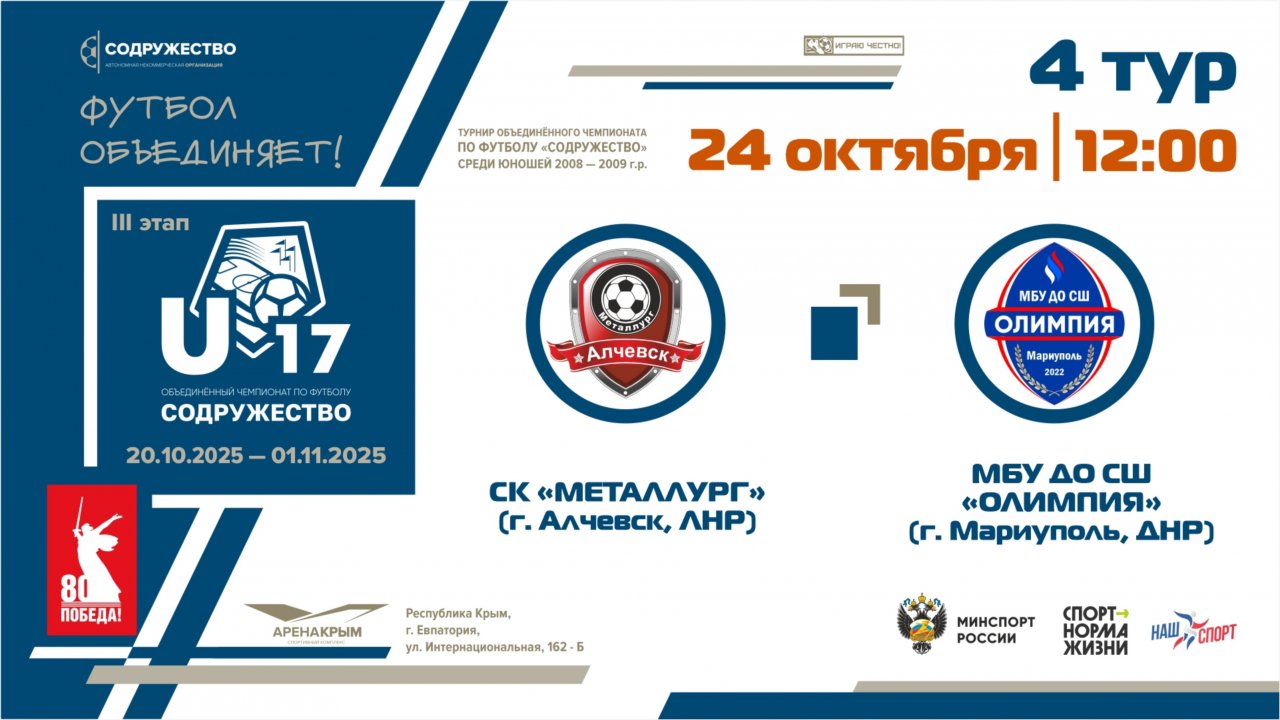 4 ТУР | U-17 | СК «Металлург» (Алчевск, ЛНР) - МБУ ДО СШ «Олимпия» (Мариуполь, ДНР) | 24.10.2025