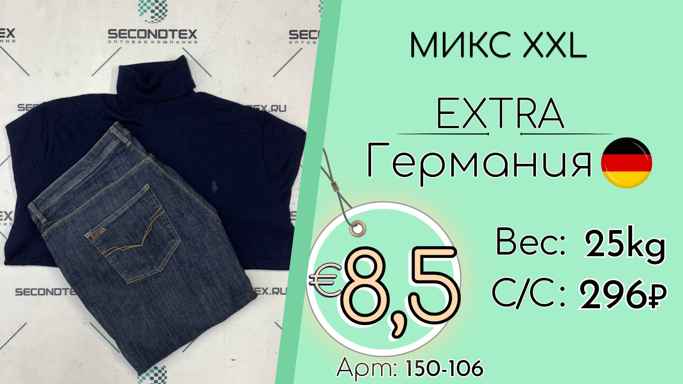 Страна: Германия Вес мешка: 25 кг Цена за кг: Евро 8,5 / Рубли 816 Цена за мешок: 20 400 руб. Себестоимость одной вещи: 296 руб. Кол-во штук: 69 шт. ____ 💰 Курс на дату съемки (05.11.2025): €1 = 96 Руб. (при наличных и безналичных платежах) 💳 €1 = 96 Руб. (при безналичной форме оплаты на р/с) Связаться с нами: +7(916)779-79-79 (WhatsApp, Telegram) Наш сайт: https://secondtex.ru Instagram: https://instagram.com/secondtex.opt Мы ВКонтакте: https://vk.com/secondtex