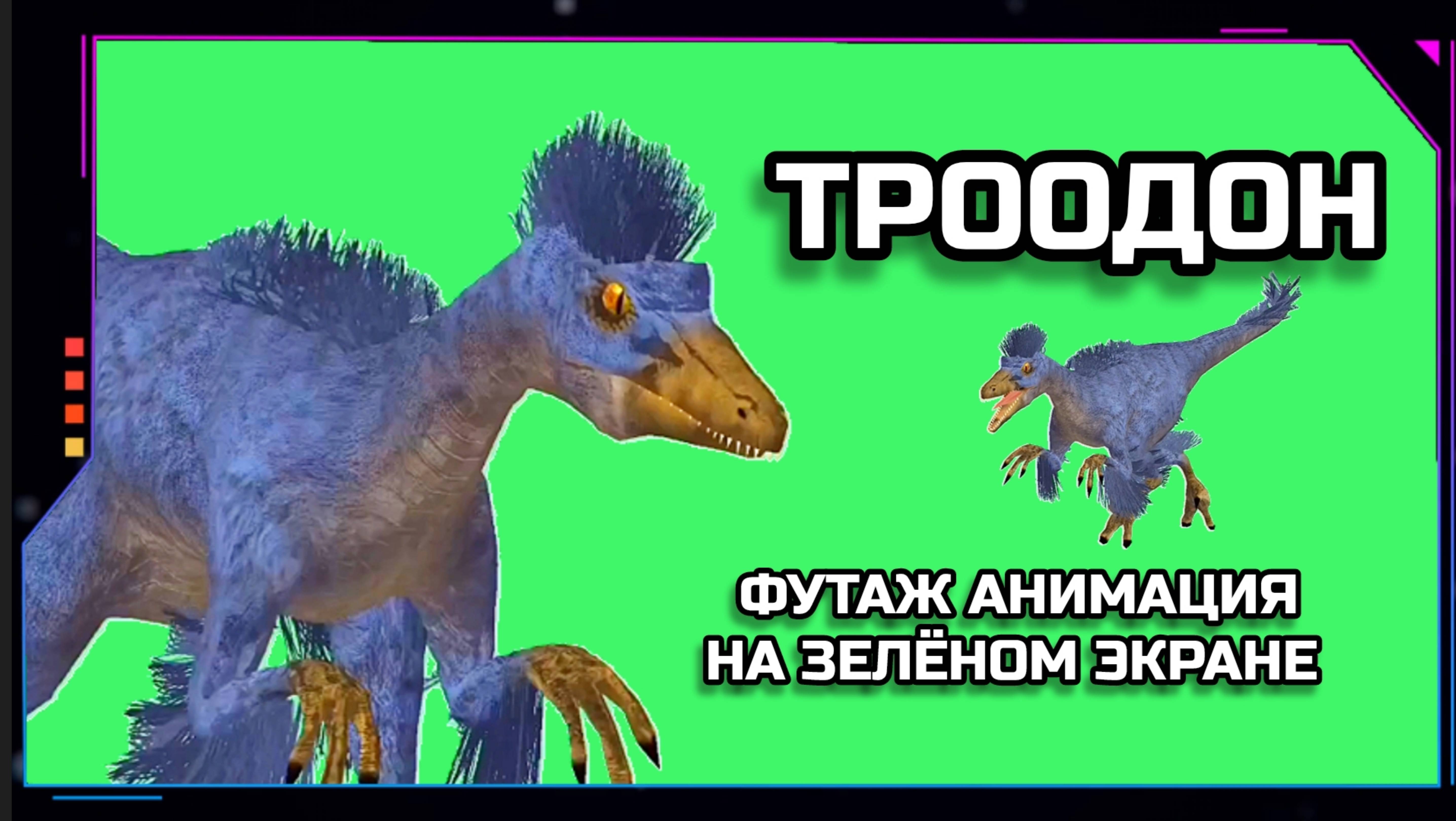 ДИНОЗАВР ТРООДОН видео Green Screen футаж. ХРОМАКЕЙ АНИМАЦИЯ на зелёном фоне.
