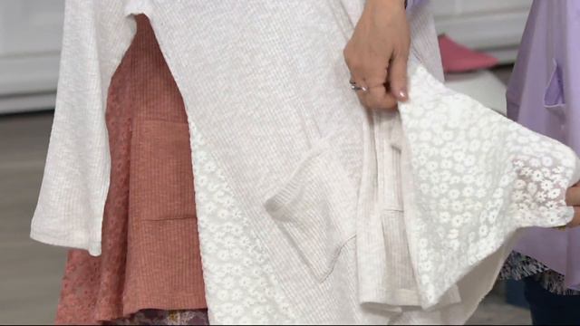 LOGO by Lori Goldstein Rib Slub Knit Top with Daisy Mesh on QVC