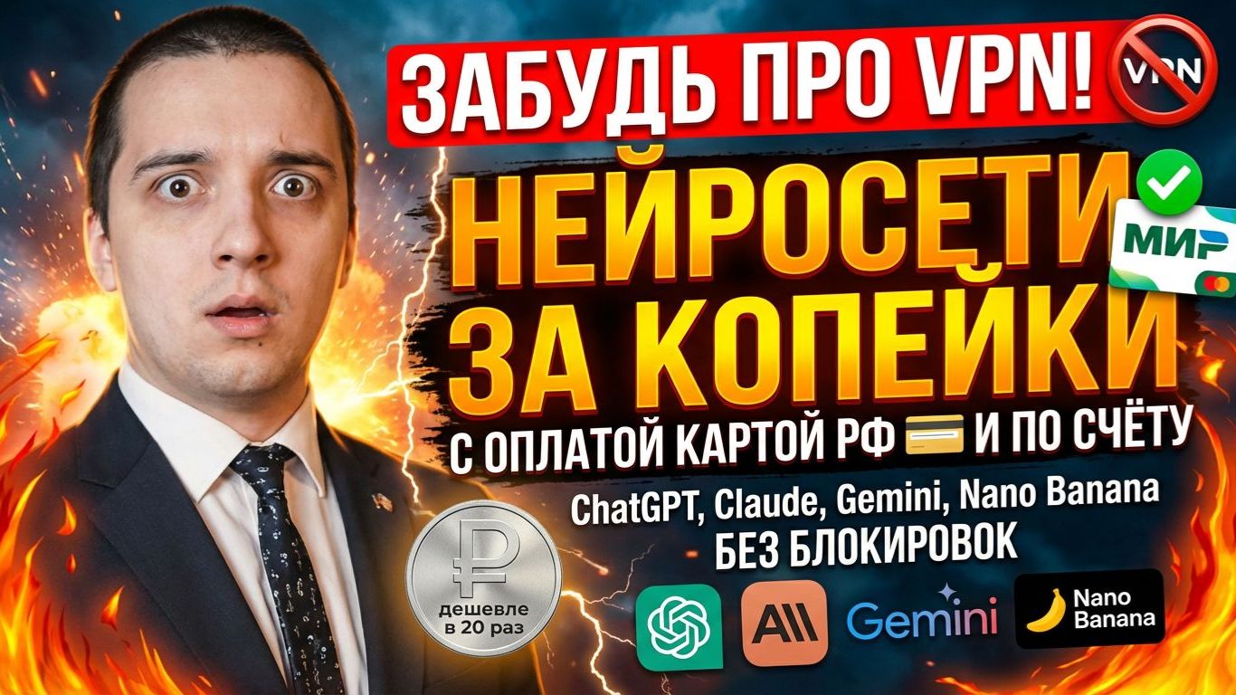 НЕЙРОСЕТИ ЗА КОПЕЙКИ! Без VPN и карт зарубежных банков. Оплата по счёту для ИП и юр.лиц. API доступ