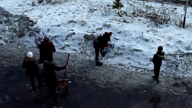 Новый способ уборки снега. )) вращением лапаты.