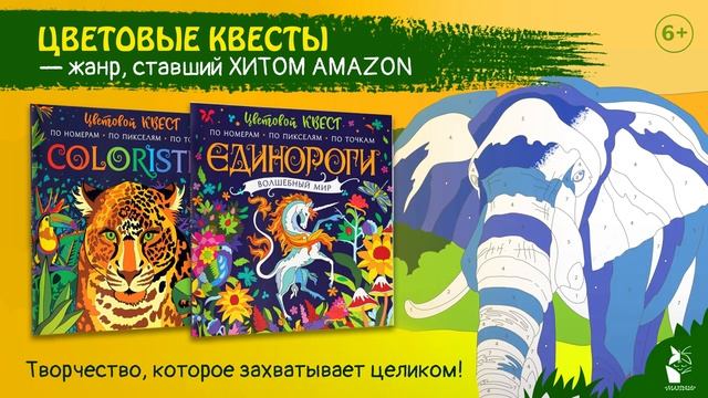 "Цветовой квест" — серия альбомов для креативного раскрашивания. Наконец и у детей появилось издание для увлекательного творческого досуга. В каждой книге объединены и адаптированы для детей жанры любимых арт-квестов для взрослых: раскраски по номерам, по пикселям, по точкам.
