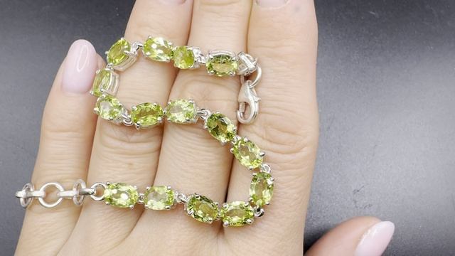 Браслет с хризолитом Замок карабин Серебро 925 пробы На запястье от 14 до 19 см