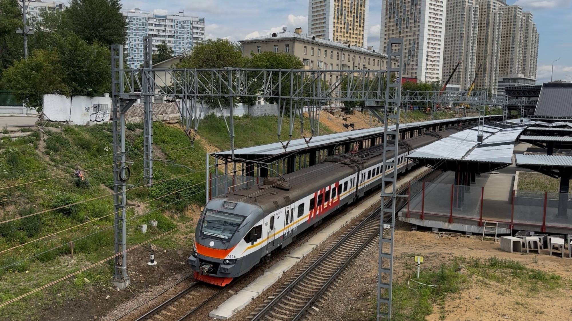 Посадки нет! Электропоезд ЭП2Д - 0126 на пл.Беговая D1, июнь 2025 года