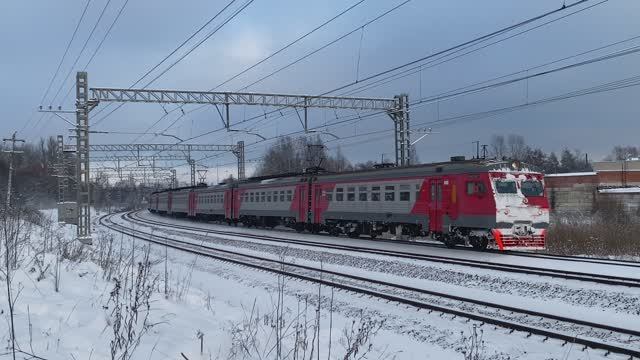 Электропоезд ЭТ2М-055, перегон Павловск - Новолисино, г. Санкт-Петербург (январь 2025г.)