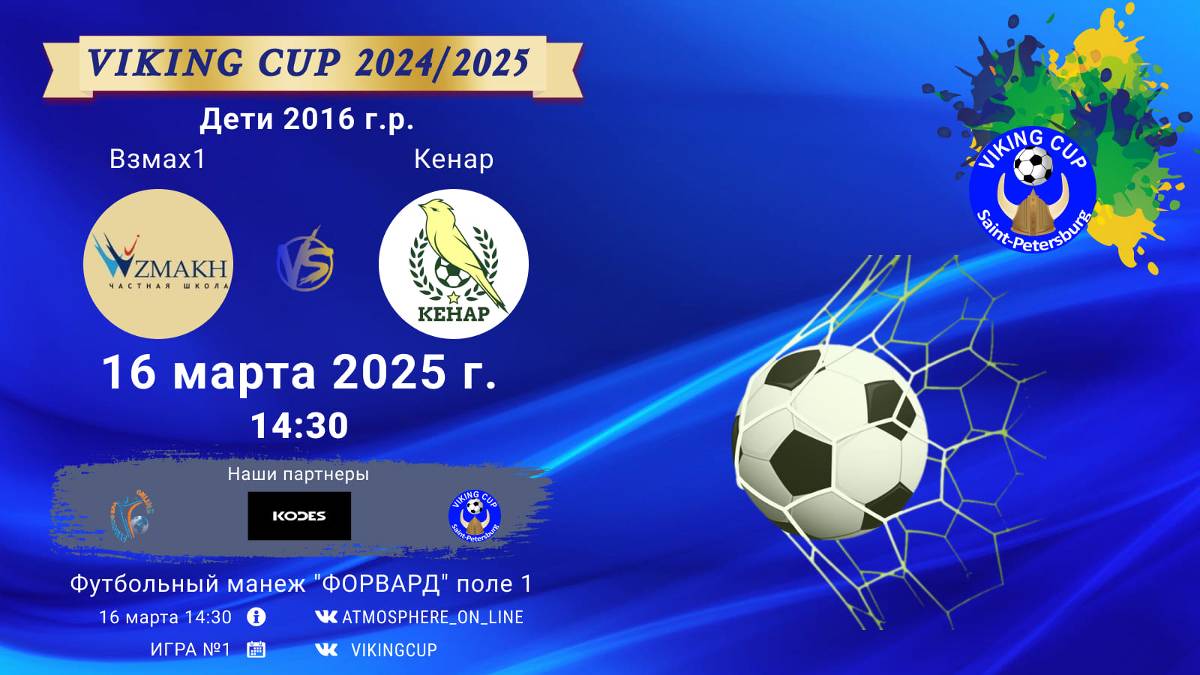 VIKING CUP среди команд 2016 г.р. (U9), Поле 1 16 марта 2025 САНКТ-ПЕТЕРБУРГ, ФЦ "Форвард" ФК "Взмах1" - ФК "Кенар"/VIKING CUP, Игра №1, 16-03-2025 14:30