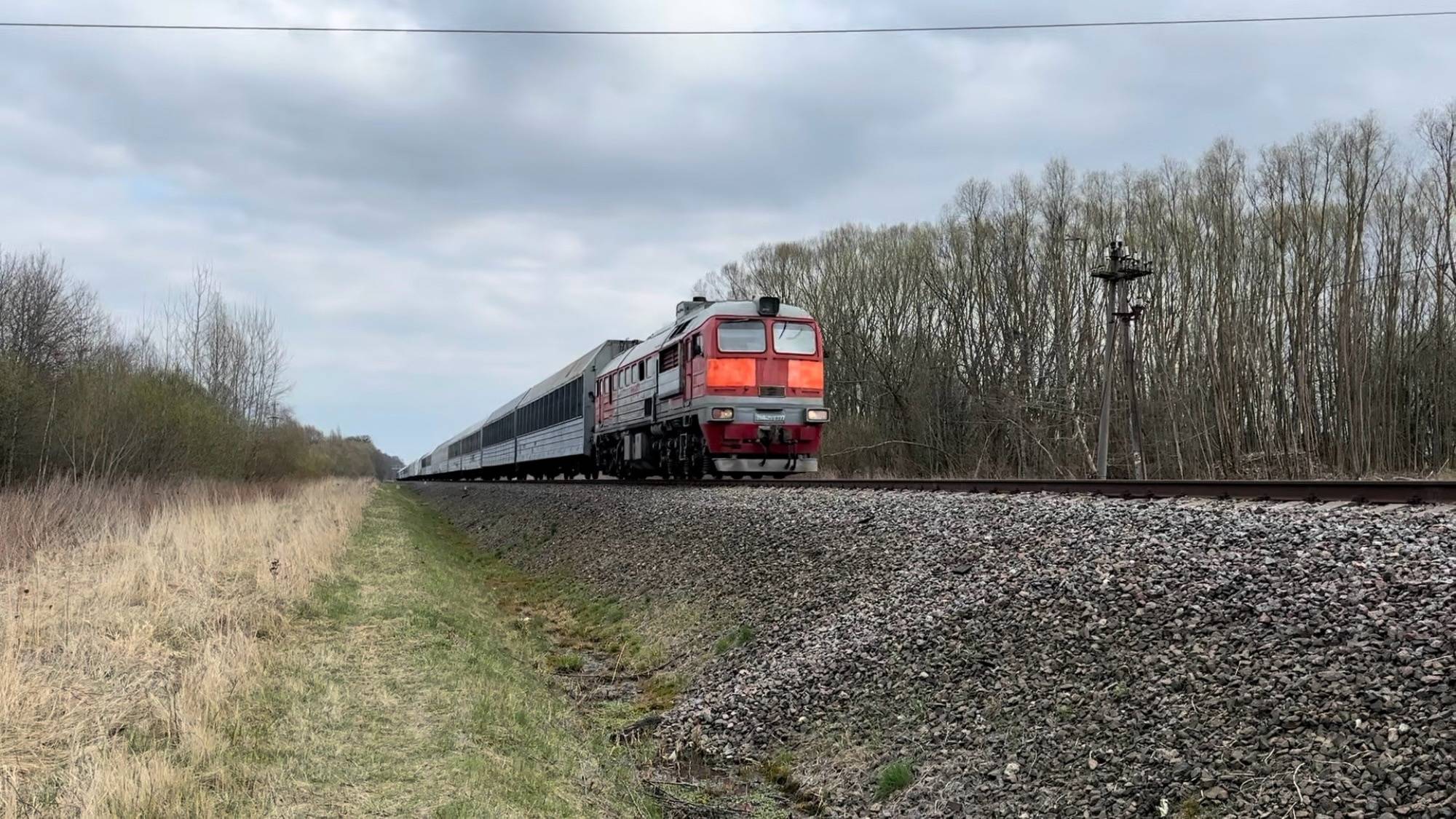 Поезда наступающей весной в Калининграде. Ласточки, двухпутная тепловозка, апрель 2025 года