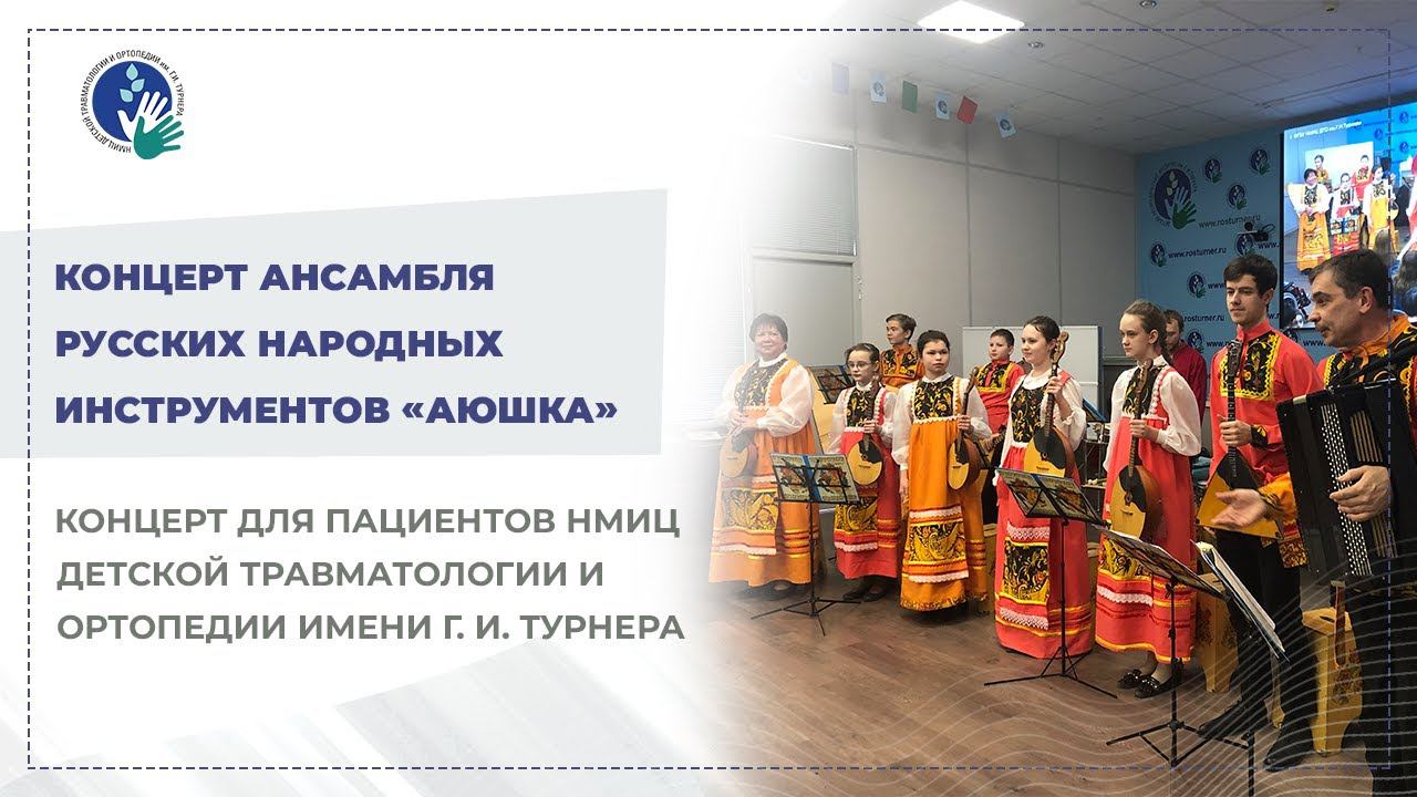 21 февраля с концертной программой НМИЦ детской травматологии и ортопедии им. Г. И. Турнера посетил ансамбль русских народных инструментов «АЮШКА» ГБУ ДО Дворец творчества Пушкинского района Санкт-Петербурга. Концерт подарил детям не только хорошее настроение и знакомство с известными композициями в исполнении русских народных инструментов. Руководители ансамбля, Олег Геннадьевич Пашков и Ирина Васильевна Михеева, познакомили пациентов Центра, проходящих лечение в стационаре, с самыми известными русскими народными инструментами: баяном, балалайкой, домрой, балалайкой-контрабасом. Педагоги рассказали детям и родителям не только об особенностях музыкальных инструментов, но и об их происхождении, о традициях русского народа, поговорили и о масленичной неделе. Но самое главное — песни и номера, которые дети (юные артисты ансамбля) подарили детям. Музыка лечит, вдохновляет, заряжает сердца и поднимает настроение. Такие концертные мероприятия помогают нашим пациентам отвлечься от недугов и врачебных процедур, вдохновляя их на скорейшее выздоровление! Благодарим ансамбль русских народных инструментов «АЮШКА», Дворец творчества Пушкинского района Санкт-Петербурга за прекрасный концерт! ======= Официальный сайт ФГБУ Национальный медицинский исследовательский центр детской травматологии и ортопедии имени Г. И. Турнера Минздрава РФ: https://www.rosturner.ru/ Многоканальный телефон для справки и записи на приём: +7 (812) 507-54-54 (пн. - пт.: 9:00 - 20:00; сб.: 10:00 - 16:00). Официальный сайт Консультативно-диагностического центра (КДЦ) ФГБУ Национальный медицинский исследовательский центр детской травматологии и ортопедии имени Г. И. Турнера Минздрава РФ: http://kdcturner.ru/ Социальные сети: VK: https://vk.com/rosturner Канал в Telegram: https://t.me/rosturner WhatsApp: https://wa.me/89633439080 YouTube: https://www.youtube.com/channel/UCDCEWYBT3u-qbk2H--v06Pw Яндекс.Дзен: https://zen.yandex.ru/id/61542e699cd25b64ded30e67 Rutube: https://rutube.ru/channel/23889686/