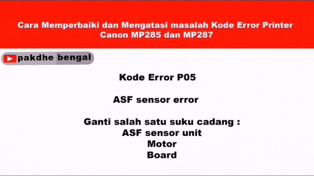 Kode Error Printer Canon Seri MP Dan Cara Menanganinya, code error e02, code error e03, code error e04, code error e05, code error e07, code error e08, code error e13, code error e16, code error p02, code error p03, code error p05, code error p06, code error p07, code error p08, code error p09, code error p15, code error p20, code error p22, kode error printer canon e02 e03 e04 e05 e07 e08 e13 e16 p02 p03 p05 p06 p07 p08 p09 p15 p20 p22 _____________ Sebelum Bertanya _____________ Banyak pertanyaan yang mungkin tidak terjawab karena kesibukan saya lainnya, Mungkin pertanyaan tersebut sudah ada jawabannya di video tutorial saya sebelumnya. Silahkan lihat cara mencari video saya di: https://youtu.be/AE6p1GhrOQw Kalau Belum Ada Tutorialnya Silahkan Request Di Kolom Komentar, Nanti Kalau Pas Ada Servicesan Masuk Dengan Kasus Yang Sama, Saya Bikinkan Video Tutorialnya. _____________ Subscribe _____________ Please yang belum subscribe, klik https://www.youtube.com/channel/UCE9qCKpPzjGBx9Md7sqggjA _____________ Kontak Kami _____________ Follow Facebook Pakdhe Bengal https://www.facebook.com/pakdhebengal Follow Instagram @pakdhe_bengal https://www.instagram.com/pakdhe_bengal Email: misronhana@gmail.com _____________ Tentang Kami _____________ Channel Kami Kusus Membahas Cara Memperbaiki Printer, service printer, cara service printer, cara perbaiki printer cara memperbaiki printer, cara memperbaiki printer error, cara refill printer, cara refill catridge #printer #tutorialprinter #repairprinter #serviceprinter #tutorialrepairprinter #tutorialserviceprinter #caramemperbaikiprinter #tokoprinter #kursusteknisiprinter #teknisiprinter #caraserviceprinter Semoga Video Video Tutorial Cara Memperbaiki Printer Di Channel Saya Ini Bermanfaat Untuk Kemajuan Channel Ini Kedepannya Jangan Lupa Like, Comment and Subscribe Bagi Yang Belum. Maaf bila dalam video ini ada kesalahan kata. TRIMAKASIH... SALAM SUKSES SELALU