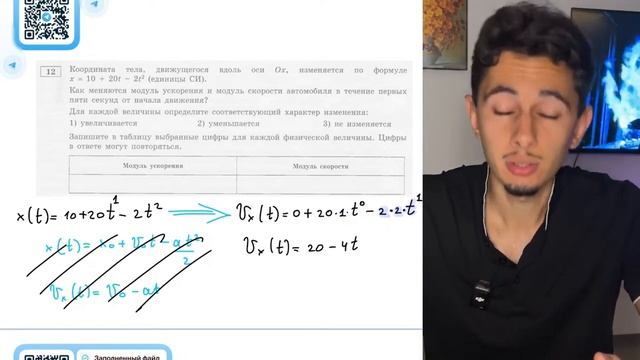Координата тела, движущегося вдоль оси Ох, изменяется по формуле x=10+20t-2t^2 (единицы СИ) -№20188