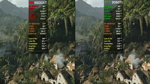 In this video, I compare the gaming performance of two graphics cards - the RTX 3060 Ti 8GB and the RX 5600 XT 6GB - at 1080p resolution. I tested both cards in 20 different games, to give you a comprehensive overview of their capabilities. Watch the video to see the results and find out which card is the best fit for your gaming needs... ● 00:00 Intro ● 00:13 The Last of Us ● 01:50 Hogwarts Legacy ● 02:46 Resident Evil 4 Remake ● 03:35 Far Cry 6 ● 04:28 Uncharted LOTC ● 05:16 Hitman 3 ● 06:04 Cyberpunk 2077 ● 07:20 Spider-Man Remastered ● 08:12 Days Gone ● 09:18 Dying Light 2 ● 10:16 Shadow of the Tomb Raider ● 11:30 A Plague Tale Requiem ● 12:11 God of War ● 13:22 Red Dead Redemption 2 ● 14:41 Control ● 15:48 Assassin's Creed Valhalla ● 17:07 Forza Horizon 5 ● 18:09 Watch Dogs Legion ● 19:18 Horizon Zero Dawn ● 20:11 Marvel's Spider-Man: Miles Morales ● PC SPECIFICATION ● CPU: AMD Ryzen 7 5800X3D ● Cooler: MasterAir MA410P CPU Air Cooler ● Casing: Cooler Master MasterBox MB511 ARGB Mid-Tower Case ● GPU1: RX 5600 XT Asrock Challenger OC 6GB ● GPU2: ZOTAC GAMING GeForce RTX 3060 Ti Twin Edge OC ● MOBO: TUF GAMING B550M-PLUS (WI-FI) ● RAM: VENGEANCE® RGB PRO 16GB (2 x 8GB) DDR4 3600MHz C18 ● PSU: DeepCool DQ850-M-V2L 850W ● OS: Windows 10 Pro 21H2 64 bit ● SSD: Samsung 850 EVO 250GB ● HDD: SEAGATE ST2000DM006 2TB ● Software Use Recording ● Nvidia Shadowplay ● AMD ReLive ● MSI Afterburner - Performance Monitoring ● Nvidia Driver Version 546.17 ● AMD Driver Radeon Software Adrenalin 23.11.1 ● Resizable Bar is On ▬▬▬▬▬▬ SUBSCRIBE Here ▬▬▬▬▬▬ ►GamesOracle https://www.youtube.com/c/GamesOracle21 Disclaimer: Copyright Disclaimer under section 107 of the Copyright Act of 1976, allowance is made for “fair use” for purposes such as criticism, comment, news reporting, teaching, scholarship, education, and research. Fair use is permitted by copyright statutes that might otherwise be infringing. #rx5600xt #rtx3060ti #nvidia #geforce #amd #5800x3d #fps #gaming #benchmark #comparison #lastofus #hogwartslegacy #hitman3 #residentevil #farcry6 #uncharted #cyberpunk2077 #spiderman #daysgone #shadowofthetombraider #aplaguetale #godofwar #reddeadredemption #control #assassinscreed #forzahorizon5