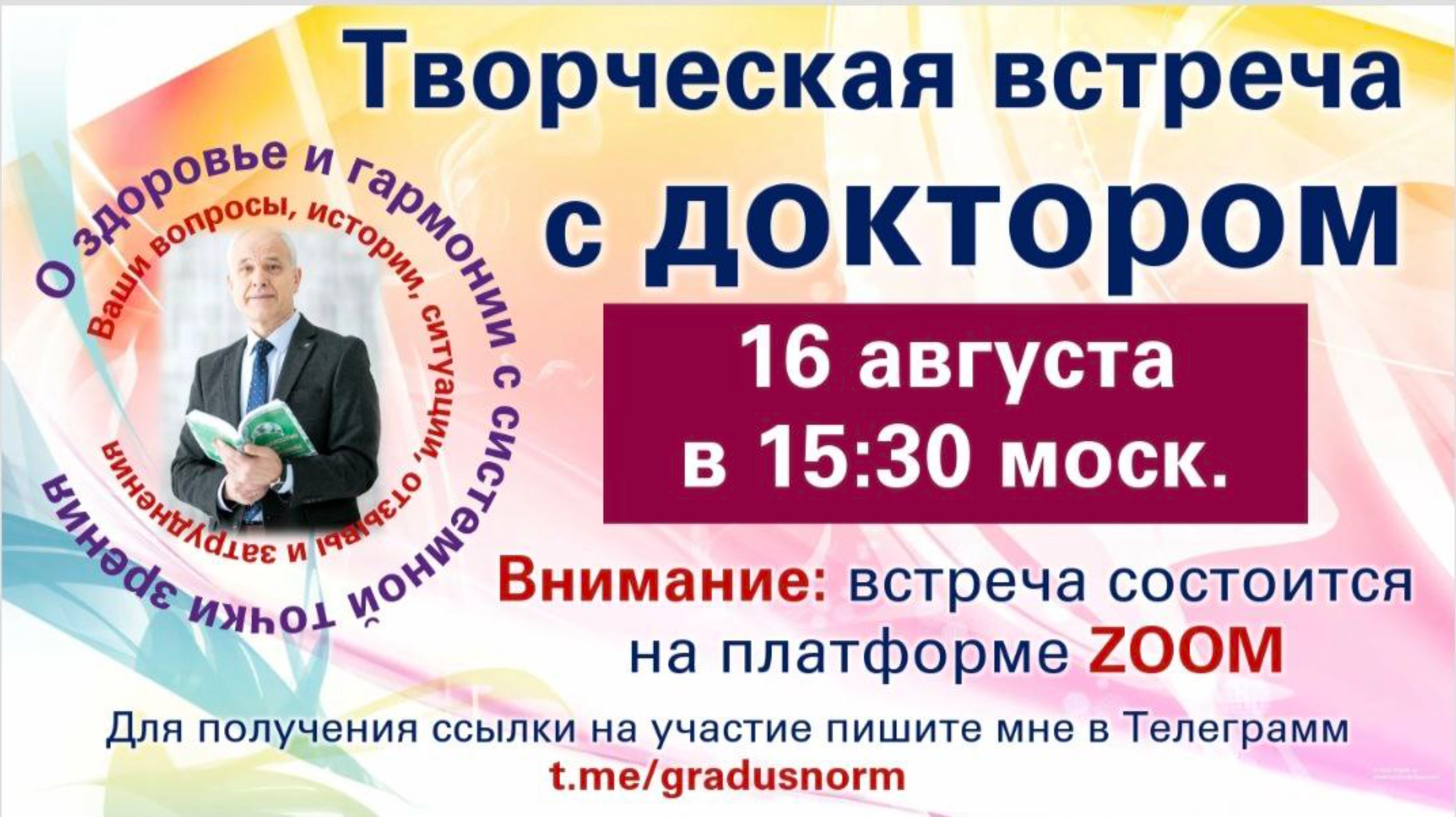 Ждем Вас на прямые эфиры в канале: Контакт: https://t.me/gradusnorm Подпишитесь и поделитесь с друзьями🫶🙏 Николай Герасимович Жевачевский Врач-иммунолог, кандидат медицинских наук Эксперт многомерной медицины с системным подходом к человеку на всех уровнях. 😇Основные направления моего творчества, как врача энерго-информационной медицины: ➡️многоуровневая диагностика глубинных причин дисгармонии и недомоганий, ➡️совместная коррекция программ и стресс-блоков, ➡️системная диагностика физического состояния, ➡️помощь в системном многоуровневом оздоровлении на всех планах Инструменты: энерго-информационная (биорезонансная) диагностика состояния всех тел; различные техники гармонизации Тонких тел, эпигенетической коррекции и осознанного перепрограммирования сценария жизни; фитонутрициотерапия и профилактика. Практикую: системные консультации с затрагиванием всех планов; провожу диагностику глубинных причин дисгармонии и недомоганий; оказываю помощь в устранении нарушений и в активном управлении здоровьем; провожу диагностику и коррекцию эпигенетических (внутриутробных) искажений; веду практически здоровых людей, пациентов и членов семьи по пути активного управления здоровьем и долголетием; творю обучающие, гармонизирующие и раскрывающие внутренний потенциал вебинары. Моя целевая аудитория: Любой человек, проявивший волю творить себя, здоровье, гармонию и отношения на всех планах. Мой ведущий тезис: Вера, Любовь и Гармония – фундамент осознанной, здравой и счастливой жизни! Контакт: https://t.me/gradusnorm nikotana@mail.ru Ярослав Окс ▫️Обо мне/мои услуги/месенджеры https://taplink.cc/yaroslove 📲 http://T.me/YarosInLove 📲WA wa.me/5145011499 📲Мой Instagram https://instagram.com/yarosinlove ➕Работаю на русском ,английском языке и иврите! #здоровье #сердце #отношения #клубздоровья #зависимость #освобожнение #исцеление #желудок #отношения #мужчинаиженщина