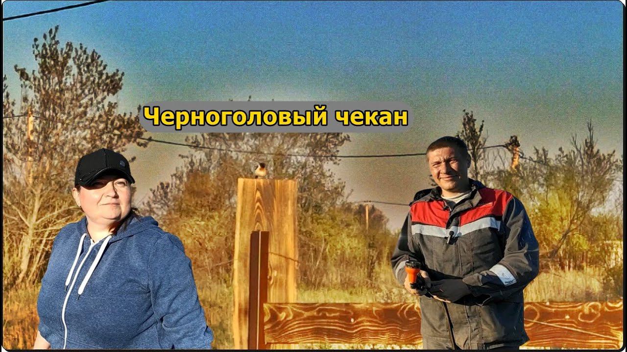 Черноголовый чекан, забор и посадки.