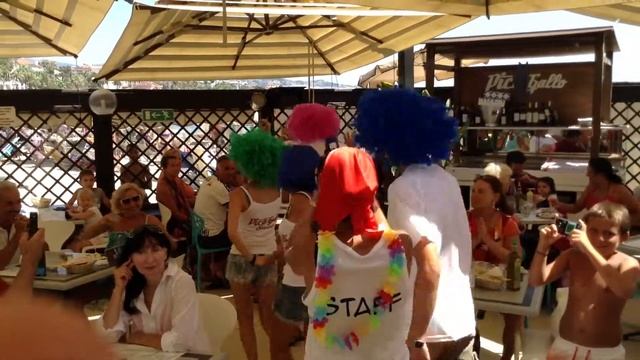 Durante il servizio di mezzogiorno lo staff del Pico balla con parrucconi sulle note di YMCA dei Village People.