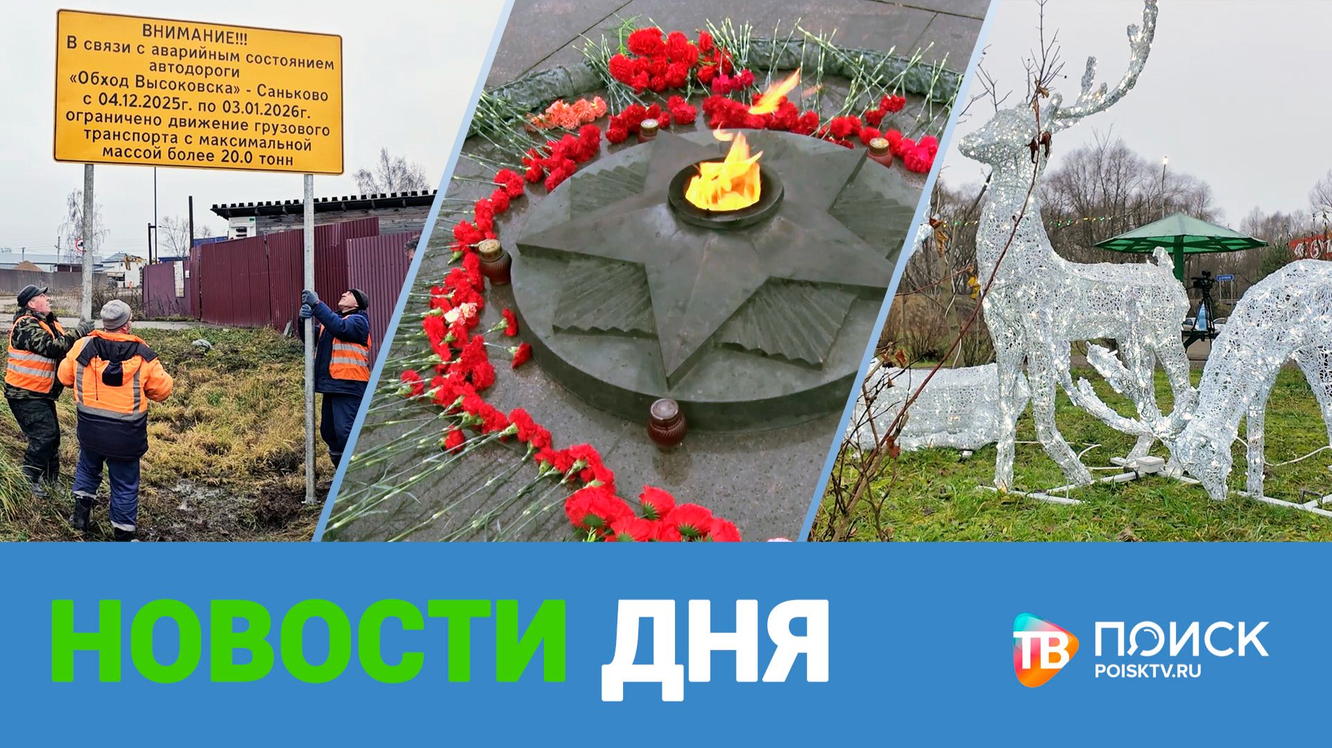 Клин. Новости дня 05.12.25 * День, который переломил ход войны. 5 декабря в России отмечают начало контрнаступления под Москвой в 1941 году. * В новый год - с подарками. Жители Зубова встретят год огненной лошади с обновленными общественными пространствами. В центре поселка появились елка, олени и светящиеся арки. * Среагировали оперативно. В деревне Масюгино рабочие восстановили дорогу на мосту. Полотно повредила тяжелая техника, которую использовали при строительстве высокоскоростной магистрали. * Не алгебра и не литература. По всей Московской области стартовала акция «Добрые уроки». К проекту Губернатора Подмосковья Андрея Воробьева присоединился и городской округ Клин. Об этом и не только в программе «Новости дня»