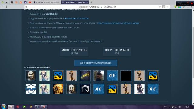 Сайт: http://vkcsgo.ru/ ПРОМОКОД: XOCHUBABLO Удачи на ставках Друзья Ставь лайк если понравилось) Не забываем писать комментарии, что получили и т.д. Мне интересно будет почитать)