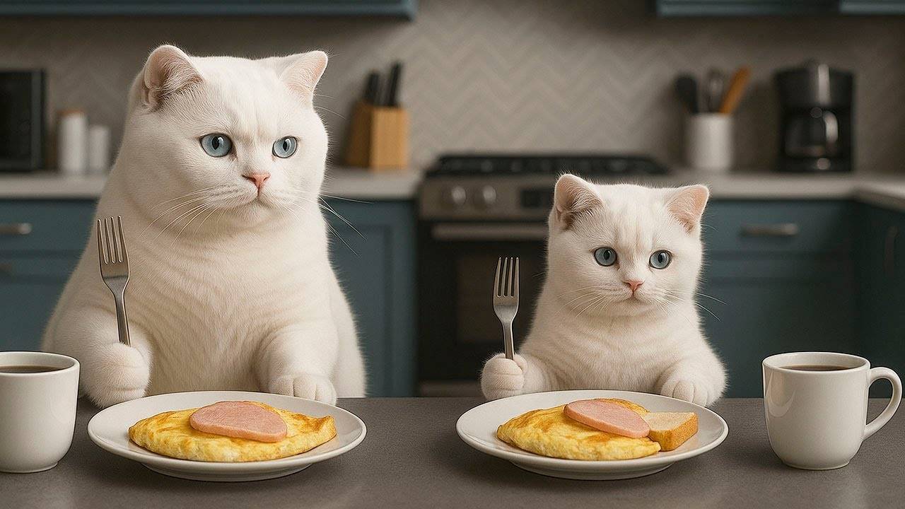 😹Мама кошечка кушает со своим маленьким котёночком🔥