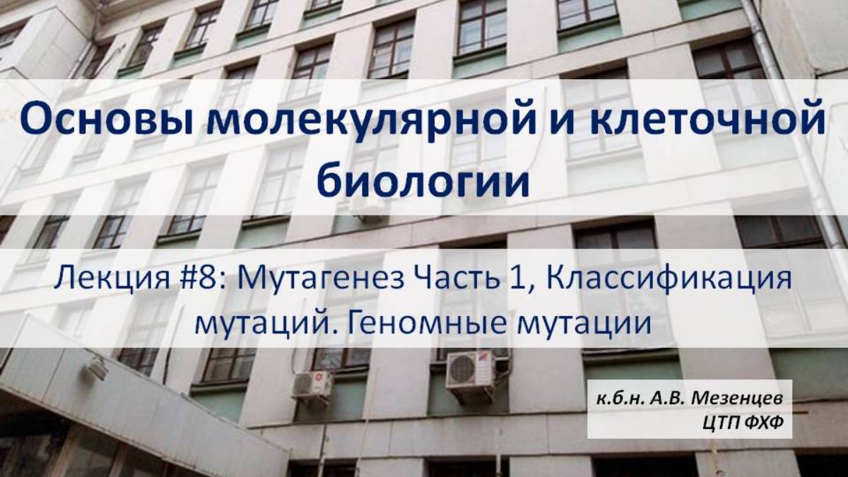 Основы молекулярной и кл. биологии (2024) Л8 Мутагенез Ч1 Классификация мутаций. генные мутации.