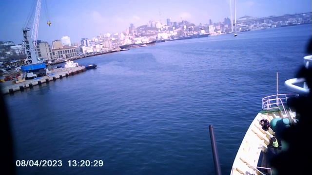 Видео показывает как происходит постановка судна к причалу с помощью лоцмана и буксиров.
