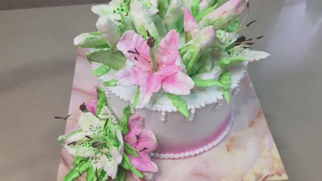 МК Украшение торта зефирными лилиями