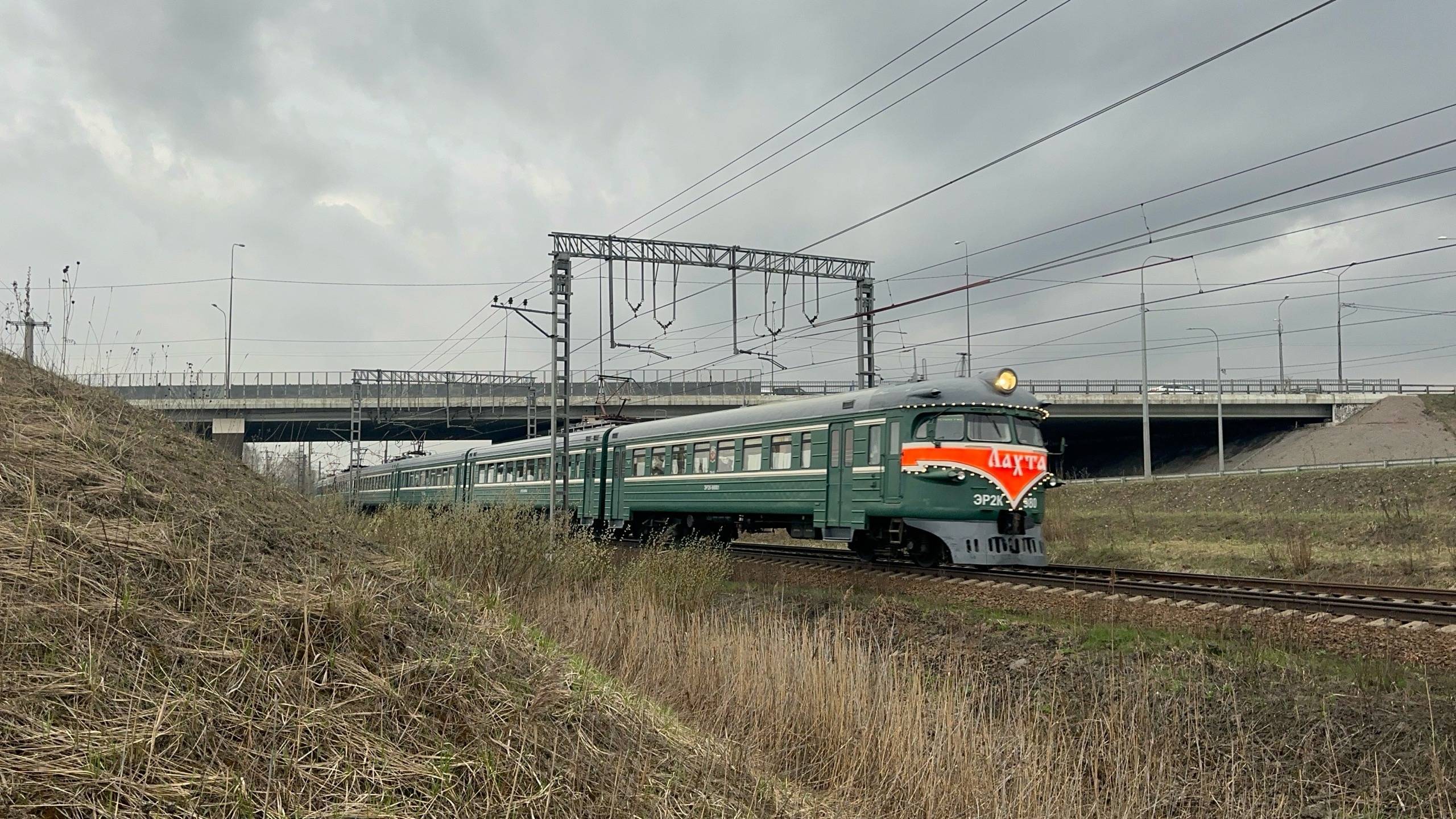"Приветливая!" Электропоезд ЭР2К - 980 "Лахта" на перегоне, апрель 2025 года