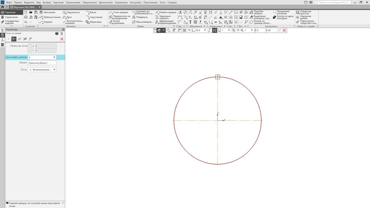 КОМПАС 3D для школьников. 4. Деление кривой на равные части 1. Рис. 70а