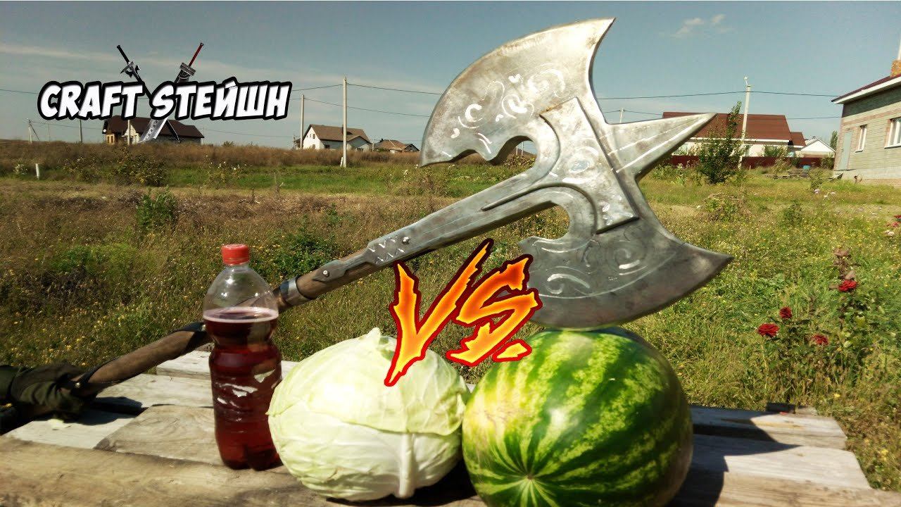 СЕКИРА ИЗ SKYRIM VS АРБУЗ ЧТО БУДЕТ ЕСЛИ РАЗРУБИТЬ АРБУЗ