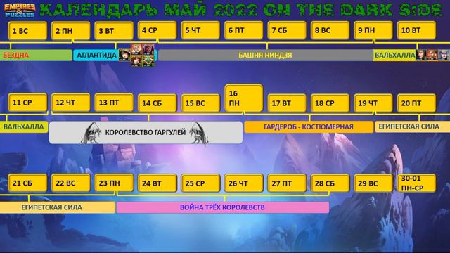 (ЕСТЬ ИЗМЕНЕНИЯ)КАЛЕНДАРЬ СОБЫТИЙ НА МАЙ 2022 В ИМПЕРИИ ПАЗЛОВ. Empires & puzzles