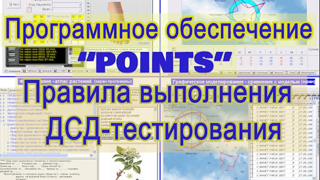 В этом видео представлены правила работы с программным обеспечением "POINTS" во время проведения динамической сегментарной диагностики по кожным сегментам вегетативного обеспечения (ДСД-тестирование на дистальных отделах конечностей). Занятие проводит д.м.н. Бойцов Игорь Васильевич