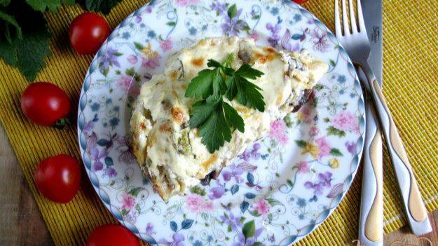 Кабачки с шампиньонами и картофелем