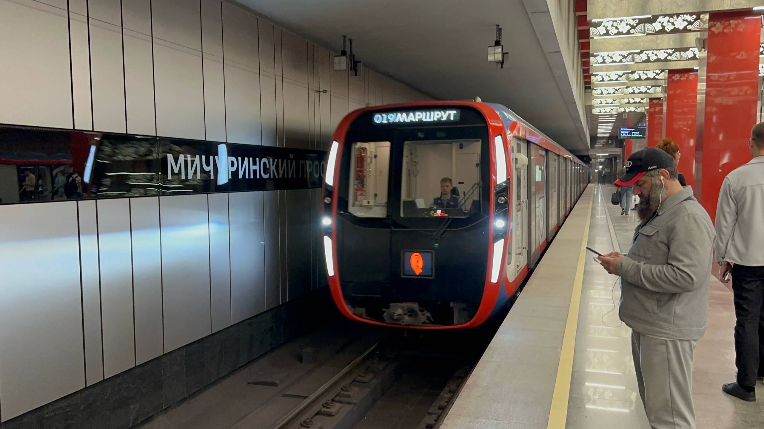 Метропоезд «Дейна/Москва-2020» (81-765/766/767) №19 на ст.м.Мичуринский проспект, июнь 2025 года