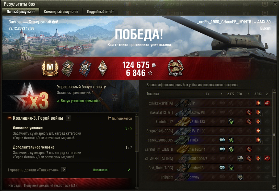 ЗАСТАВА МАСТЕР на AMX 30 ОПЫТ: 1304 СУММАРНЫЙ УРОН: 6135 медаль ПОДДЕРЖКА