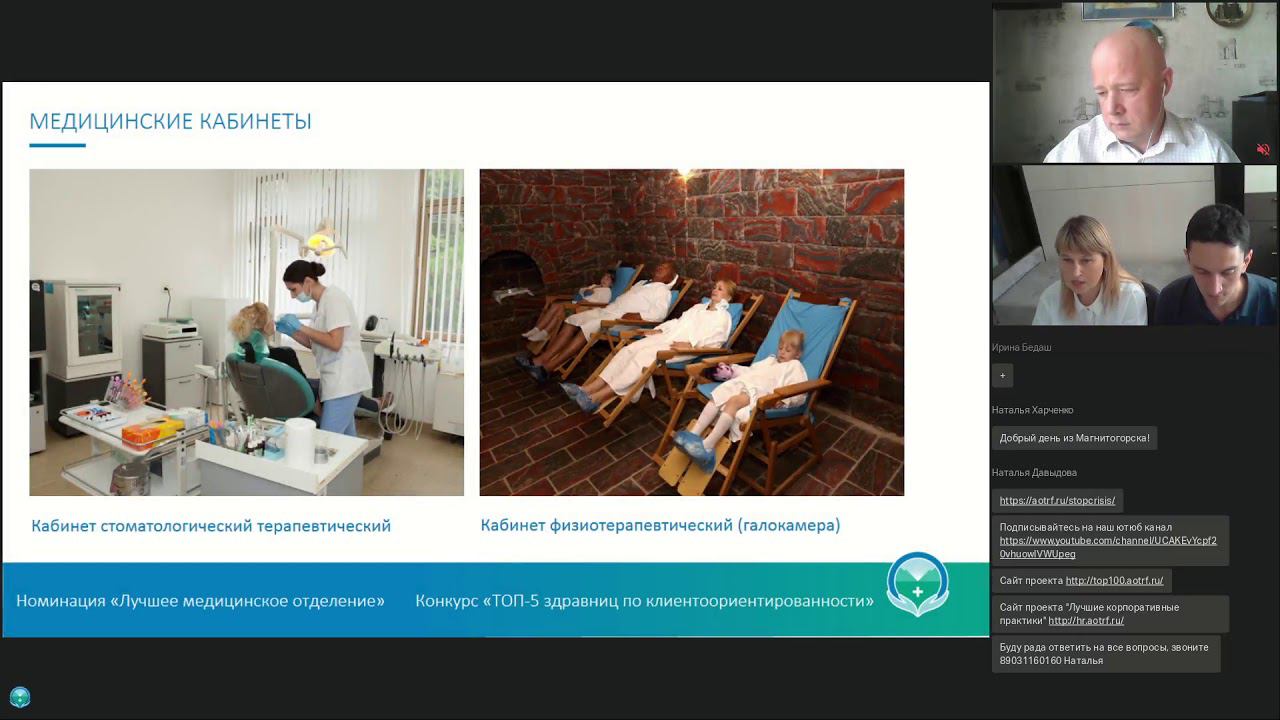 14.05 Вебинар в номинациях «Лучшее пространство для отдыха», «Лучшее медицинское отделение»