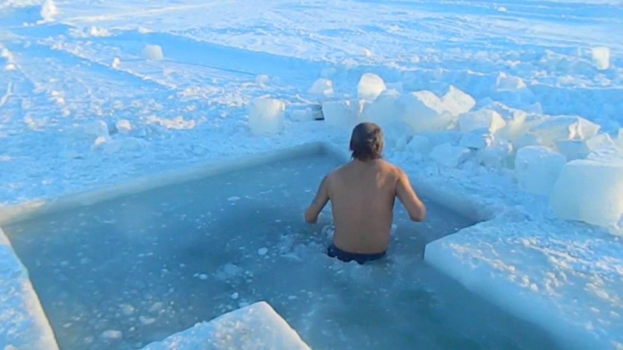 Посвящение проводится в купели, сделанной во льду — её выпиливают мотопилой, глубину делают около полутора метров, желающий считаться полярником выходит из палатки и, без подогрева спиртным, что важно, с головой окунается в эту купель. Видео предоставлено Александром Лынником. Подробное интервью читайте здесь: http://i-gazeta.com/news/poehali/35553.html